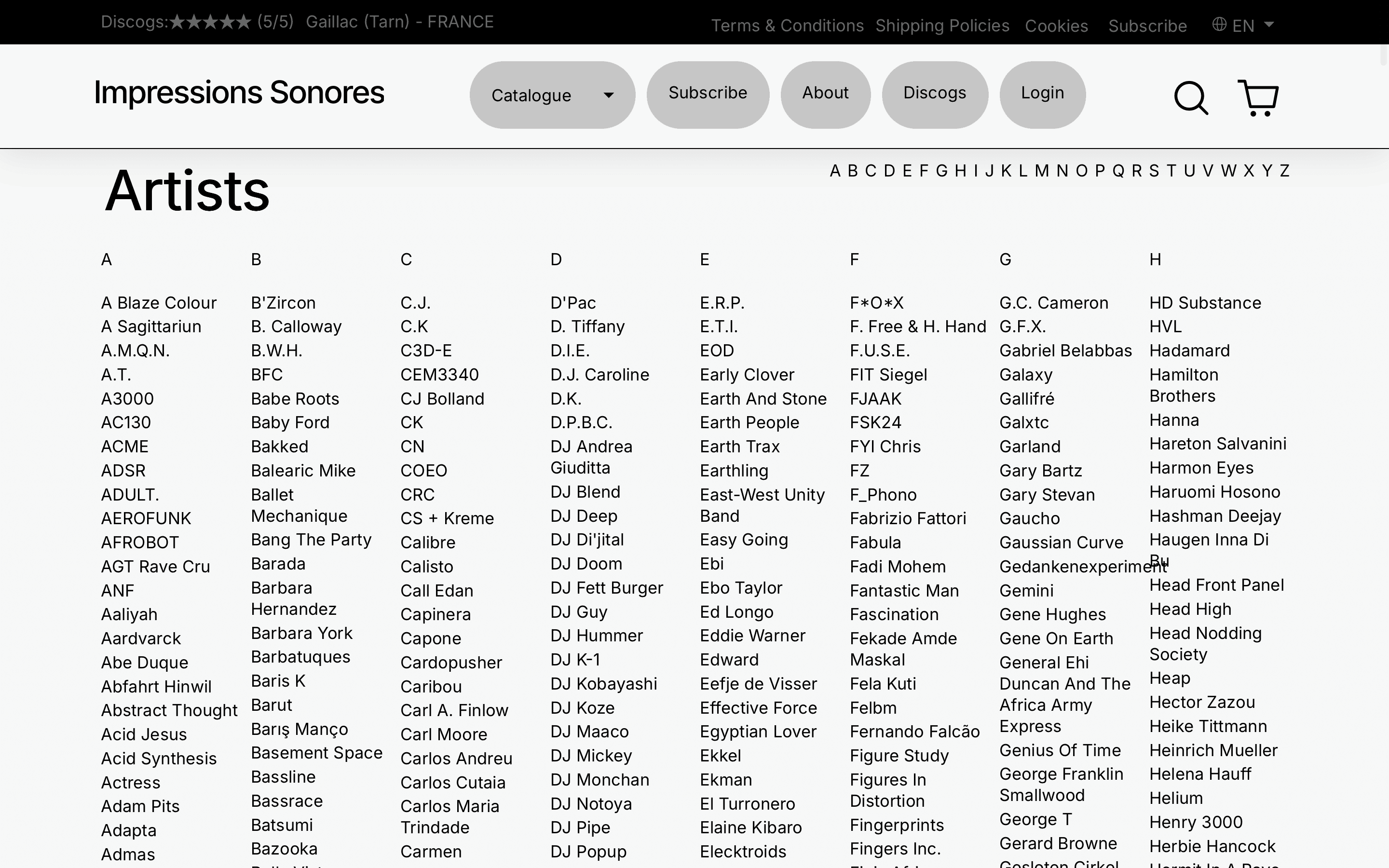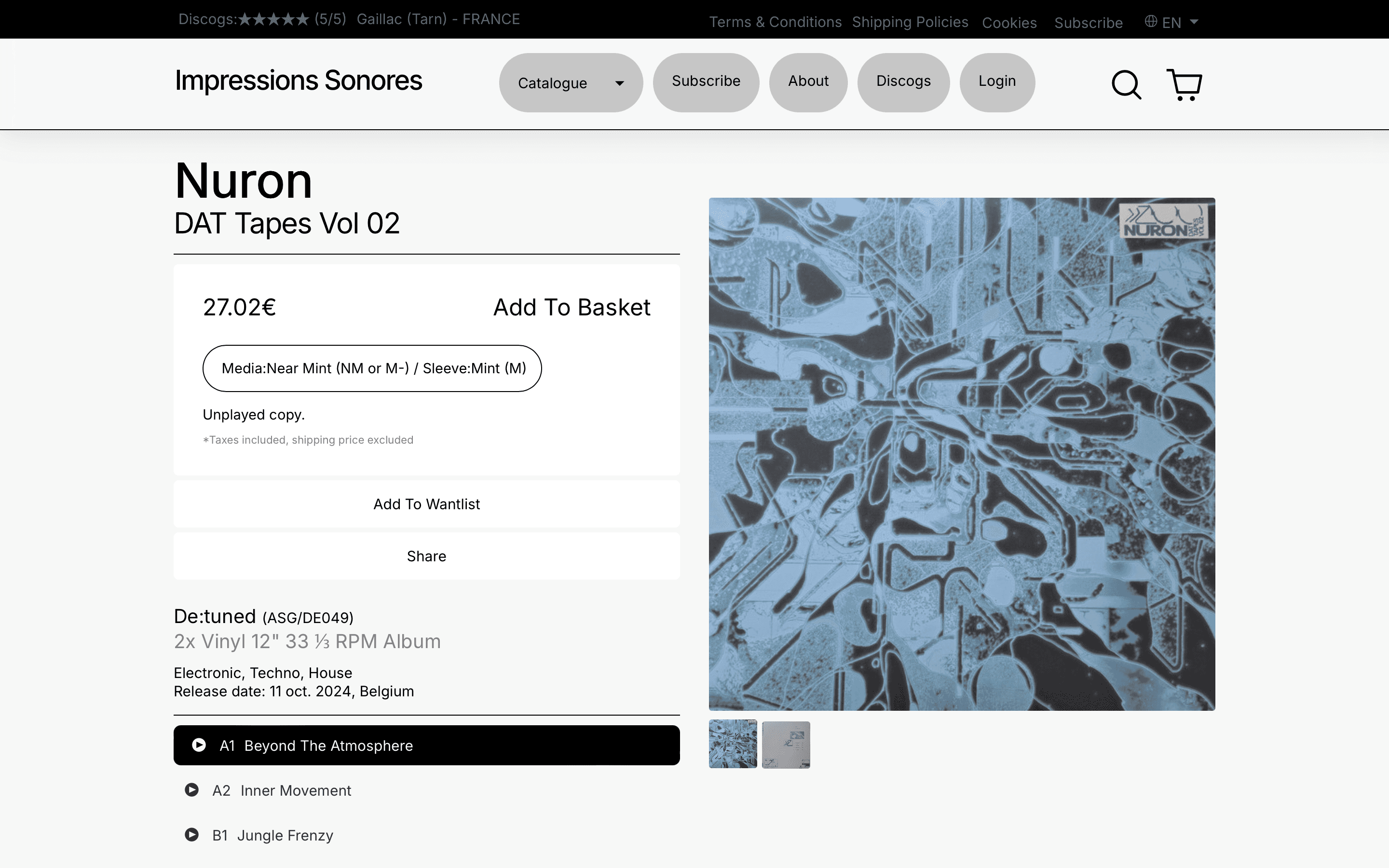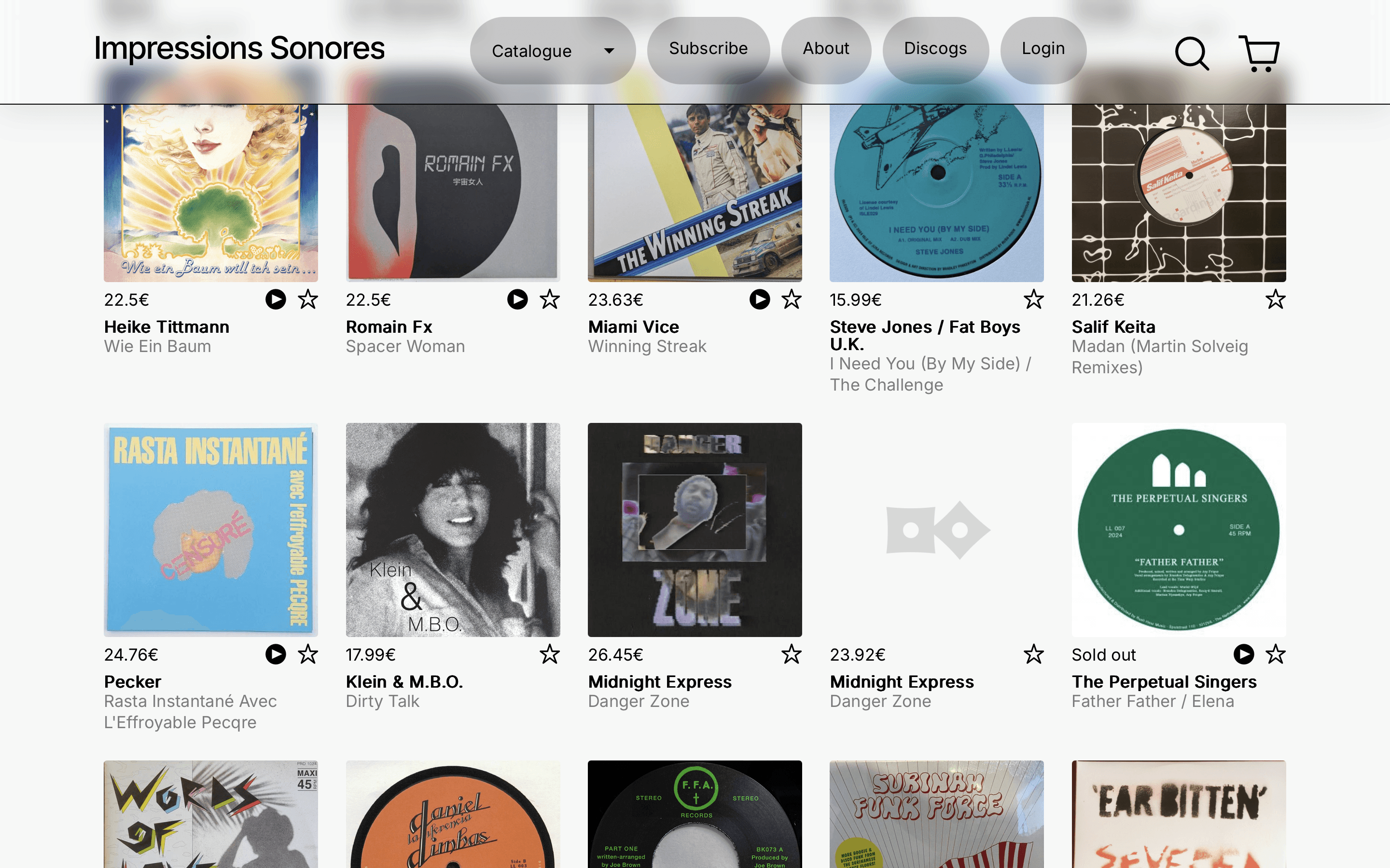 Operating from Gaillac (FR), Impression Sonores began as a Discogs seller with an impeccable 100% positive rating and has since evolved into an online record store focused on the electronic music scene. The team approached us to design an online Eshop and assist with integrating their online presence, including domain registration, SEO, and other essentials. We also experimented with glassmorphism (opacity blurring) on the main menu and animations on webpage asset rollovers.